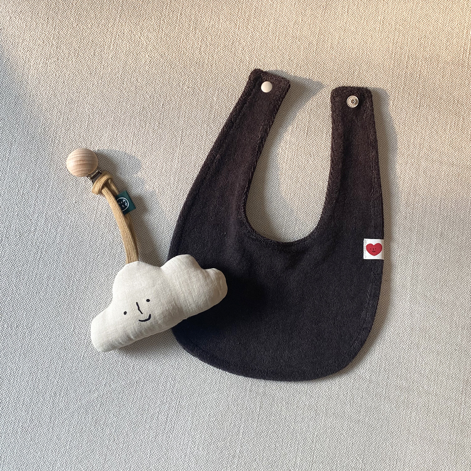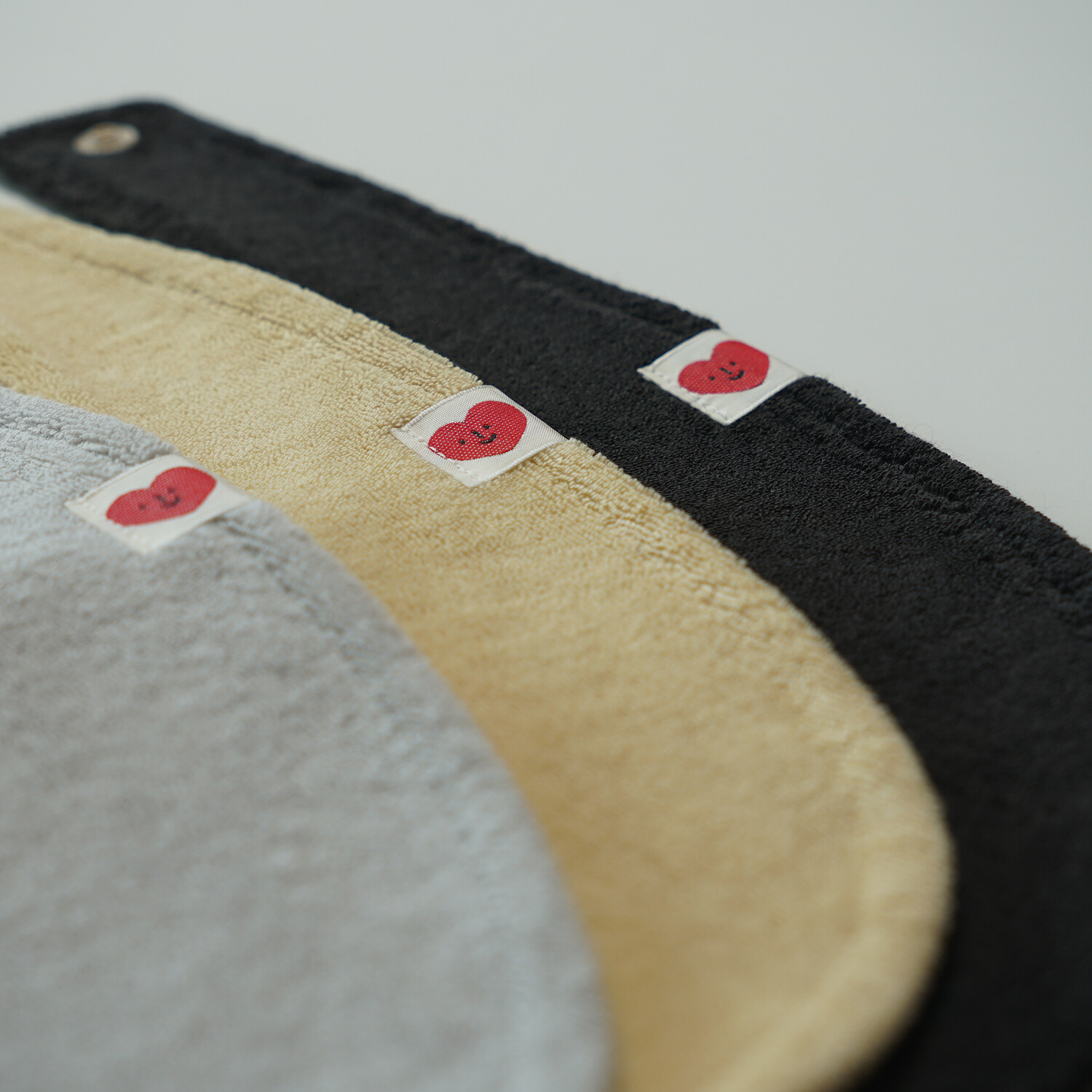 Introducing a terry cloth bib that feels soft and comfortable against baby's skin.