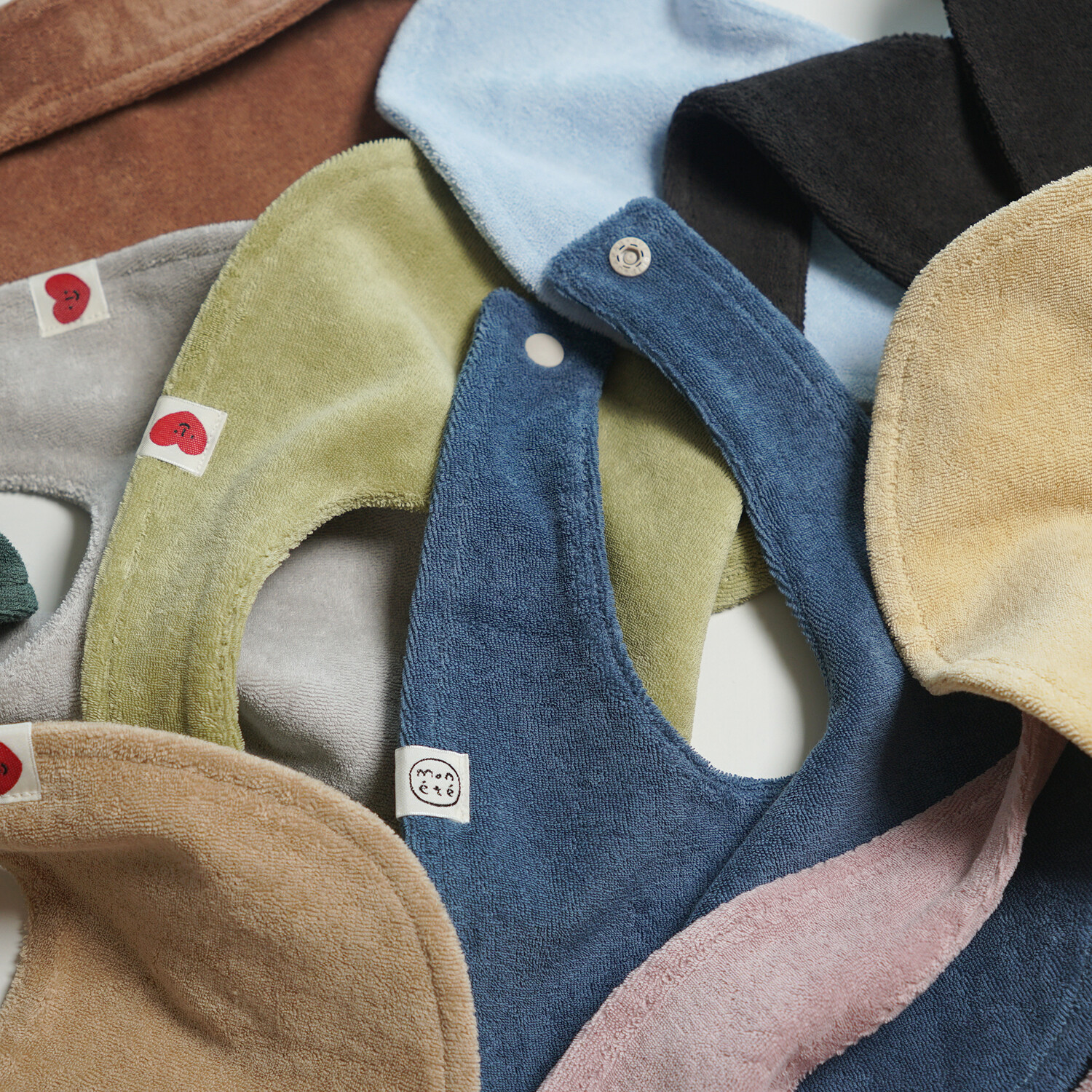 Our Petit Terry Bib is designed in a perfect size to prevent overheating during summer. This double-sided terry bib offers excellent absorption, effectively soaking up food and drool to keep your baby dry and comfortable.