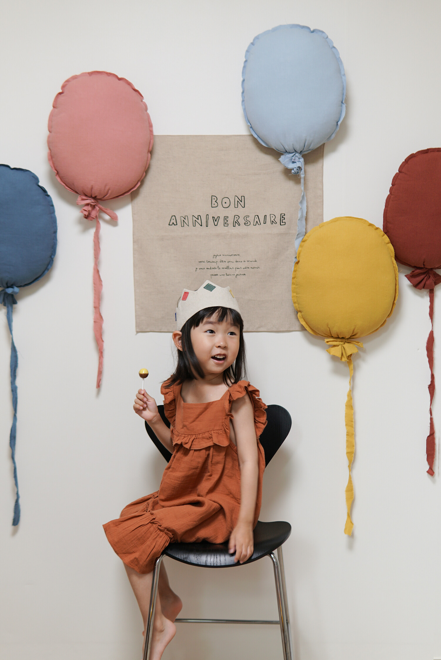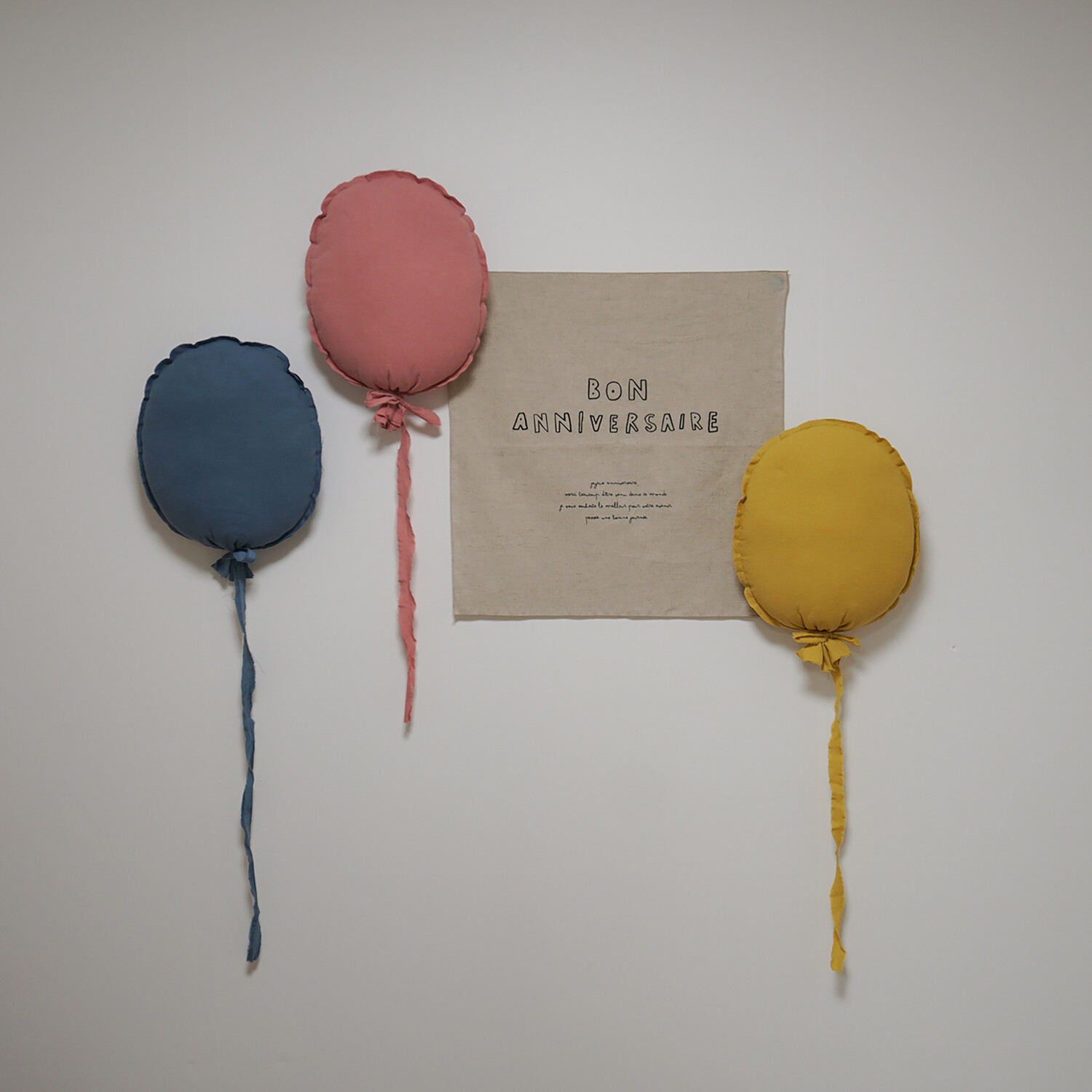 A fabric poster perfect for adding a festive touch to simple celebrations. Features "Happy Birthday!" in cute handwritten French text. Made with natural linen material, it's versatile enough to use not only for parties but also as a decorative piece or partition.