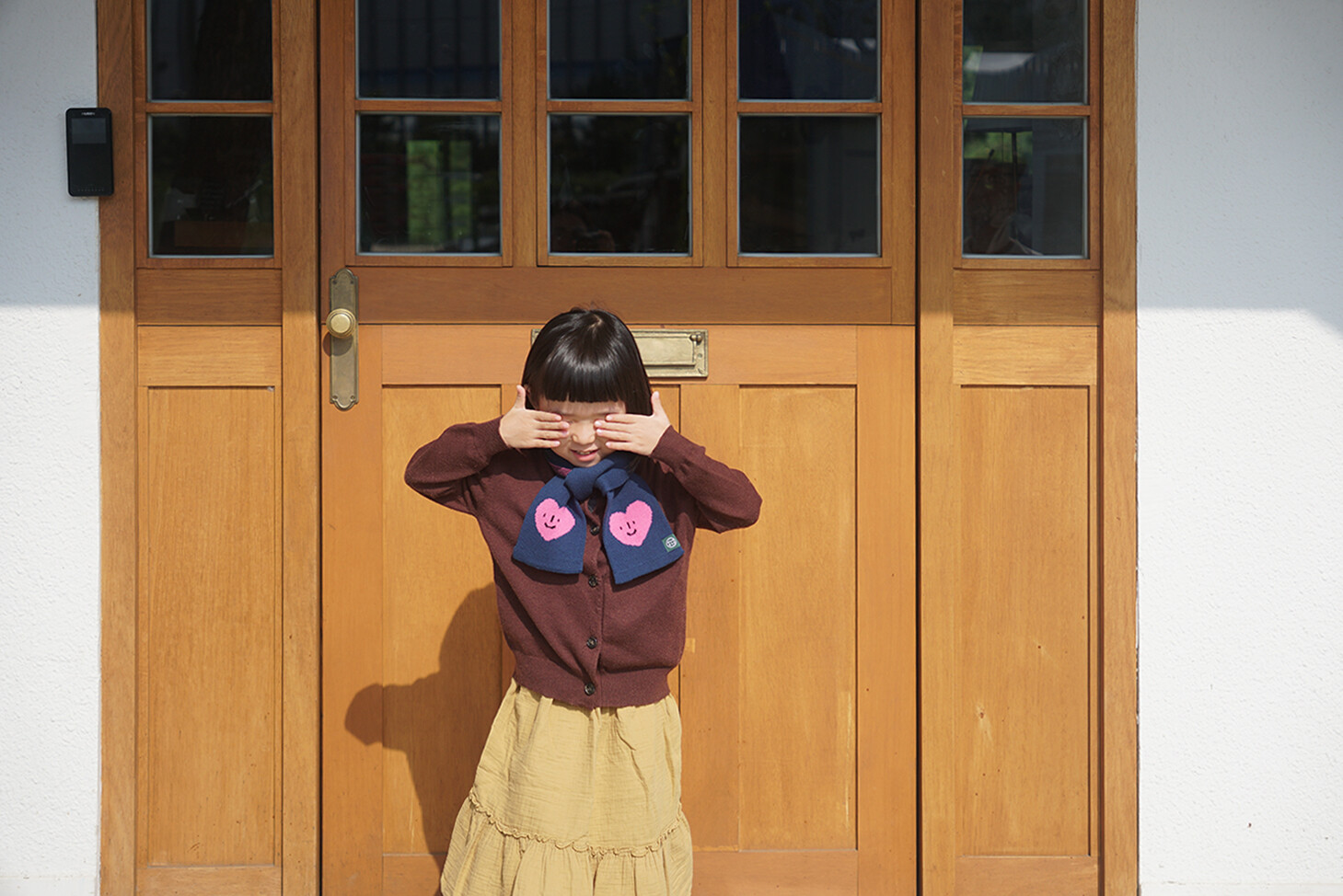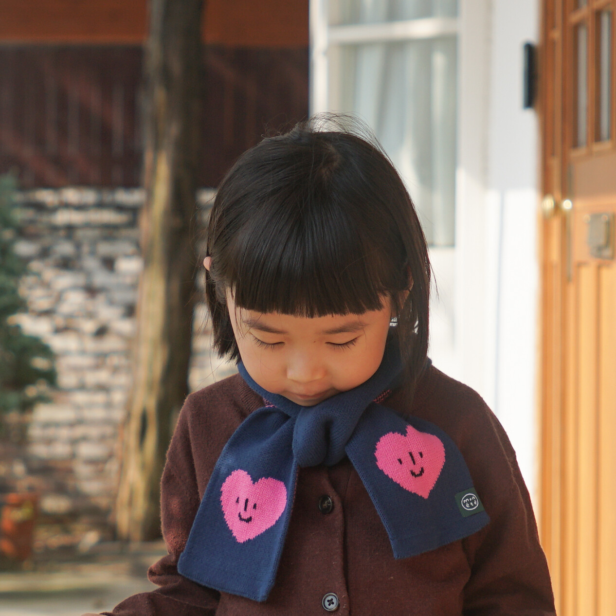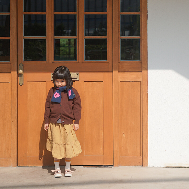 A charming petit muffler in heart shape featuring MONETE's signature expressions. With its palm-width size, this versatile muffler is perfect for frequent use from fall through winter and into spring.