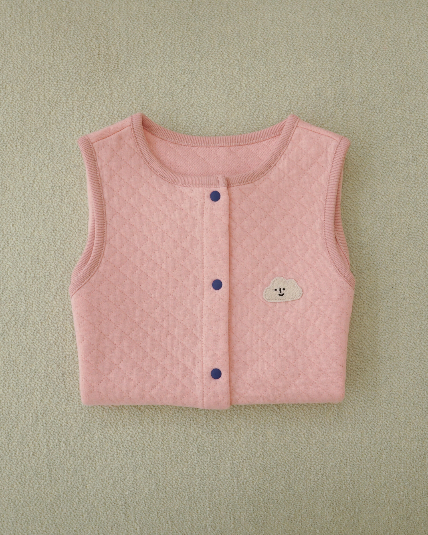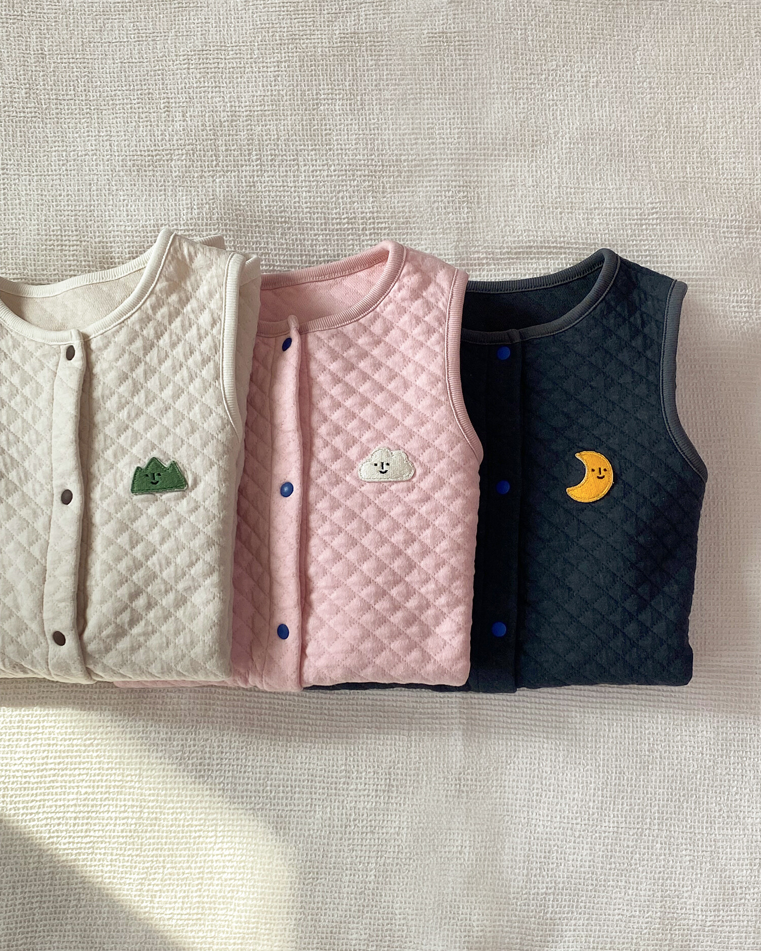 Available in three colors: Berry Milk, Charcoal, and Cream, each vest is adorned with MONETE’s signature cloud, moon, and forest-shaped patches, along with matching snap button colors that add a sweet touch.
