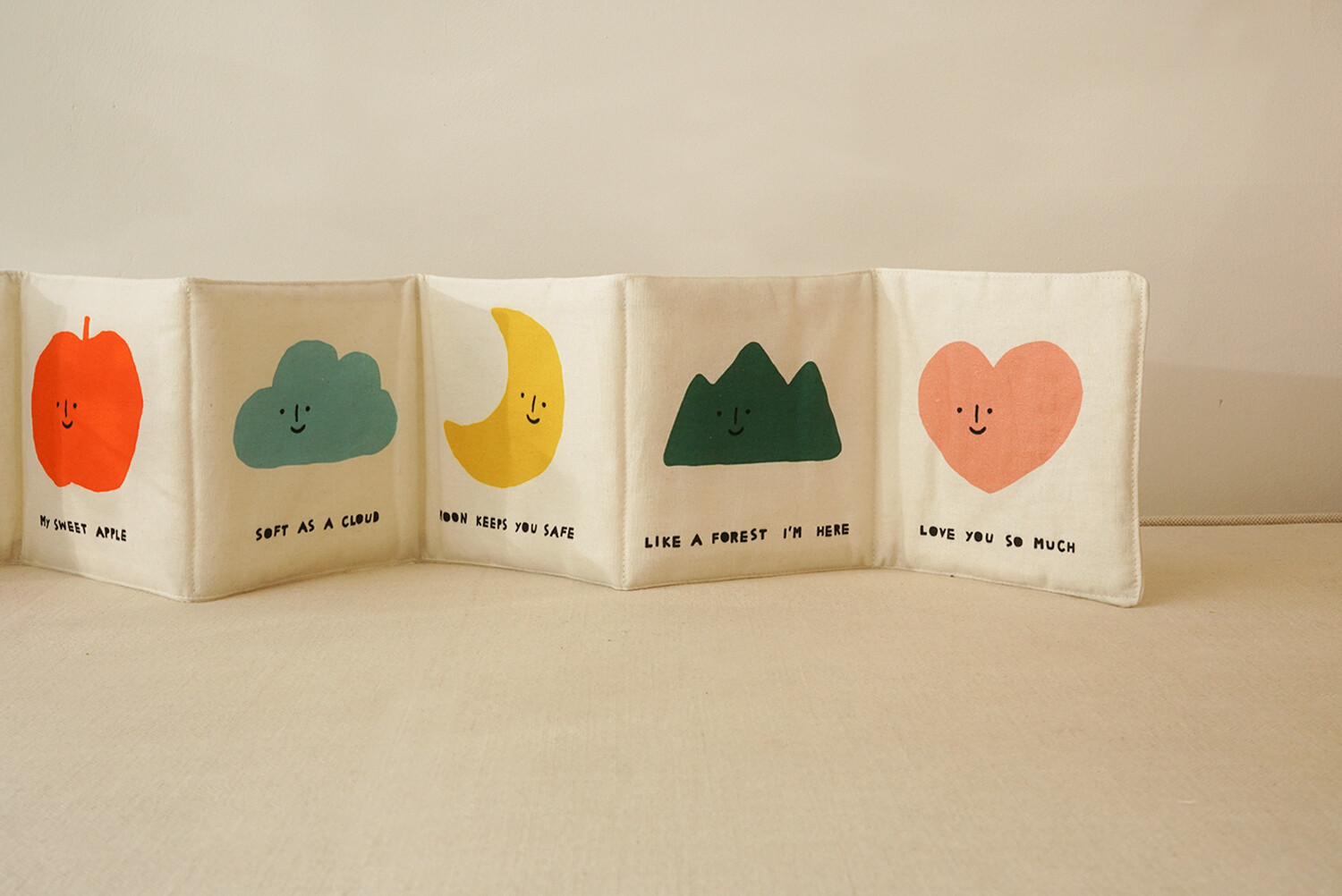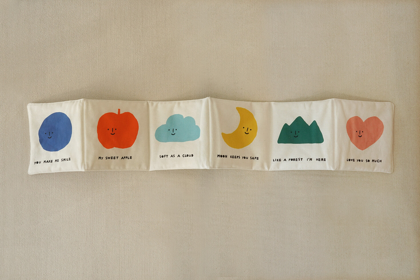 “YOU MAKE ME SMILE / MY SWEET APPLE / SOFT AS A CLOUD / MOON KEEPS YOU SAFE / LIKE A FOREST I’M HERE / LOVE YOU SO MUCH”