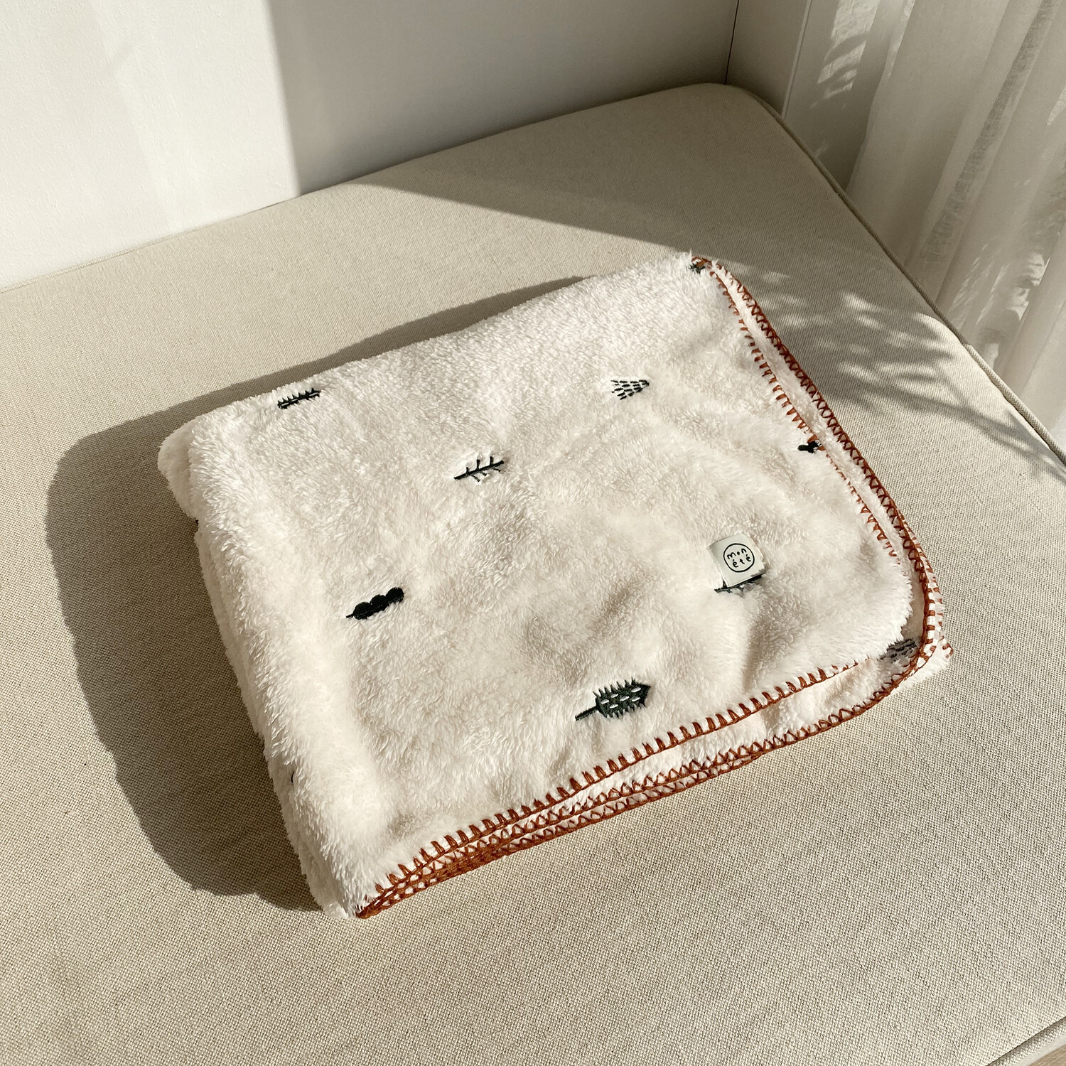 *Due to embroidery characteristics, the back of the blanket has a rougher finish. While we trim loose threads as much as possible, a completely clean finish is difficult with fur material. Please consider this when purchasing.