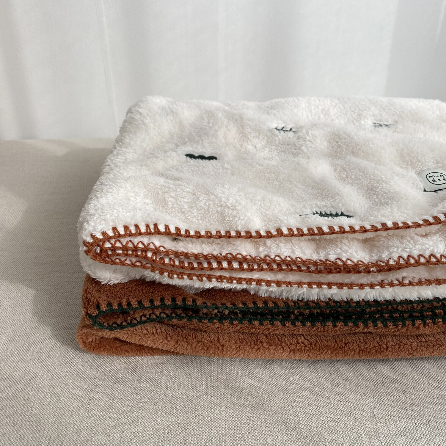 • Due to the nature of embroidered finishes, the back side of the blanket may have some loose threads or a slightly rough texture. We do our best to tidy it up before shipping, but please understand that a perfectly clean finish may not be possible due to the characteristics of the faux fur material.