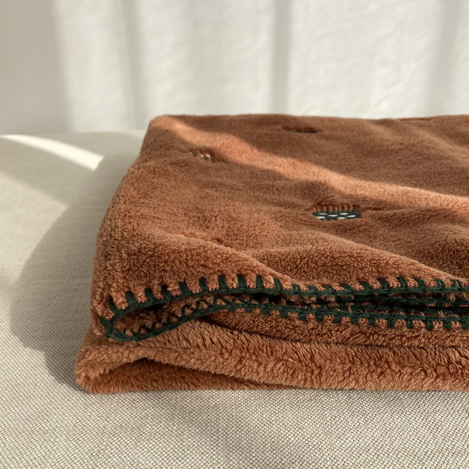 • Due to the nature of embroidered finishes, the back side of the blanket may have some loose threads or a slightly rough texture. We do our best to tidy it up before shipping, but please understand that a perfectly clean finish may not be possible due to the characteristics of the faux fur material.